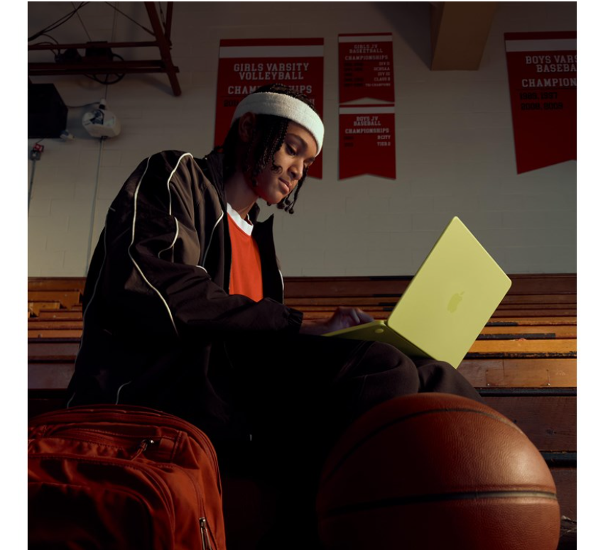 MacBook Neo gaat altijd met je mee, van ’s morgens vroeg tijdens je eerste college tot ’s avonds laat, als je nog even bij wil komen van je dag.